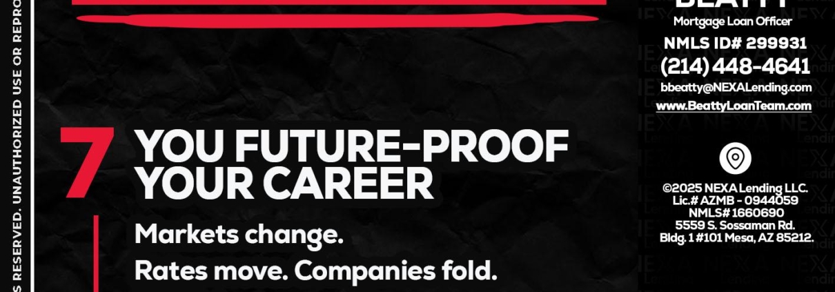 7 THINGS (7) - Brian Beatty -Mortgage Loan OfficerHi, my name is Brian Beatty. I’m a Loan Officer with NEXA Lending LLC., offering personalized mortgage solutions, fast customized quotes, great rates and service with integrity.