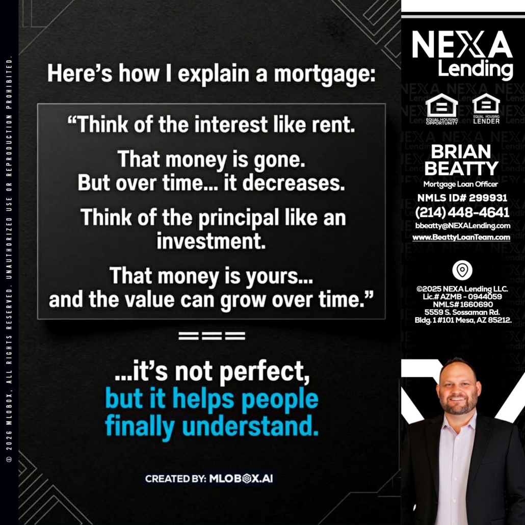 Hi, my name is Brian Beatty. I’m a Loan Officer with NEXA Lending LLC., offering personalized mortgage solutions, fast customized quotes, great rates and service with integrity.